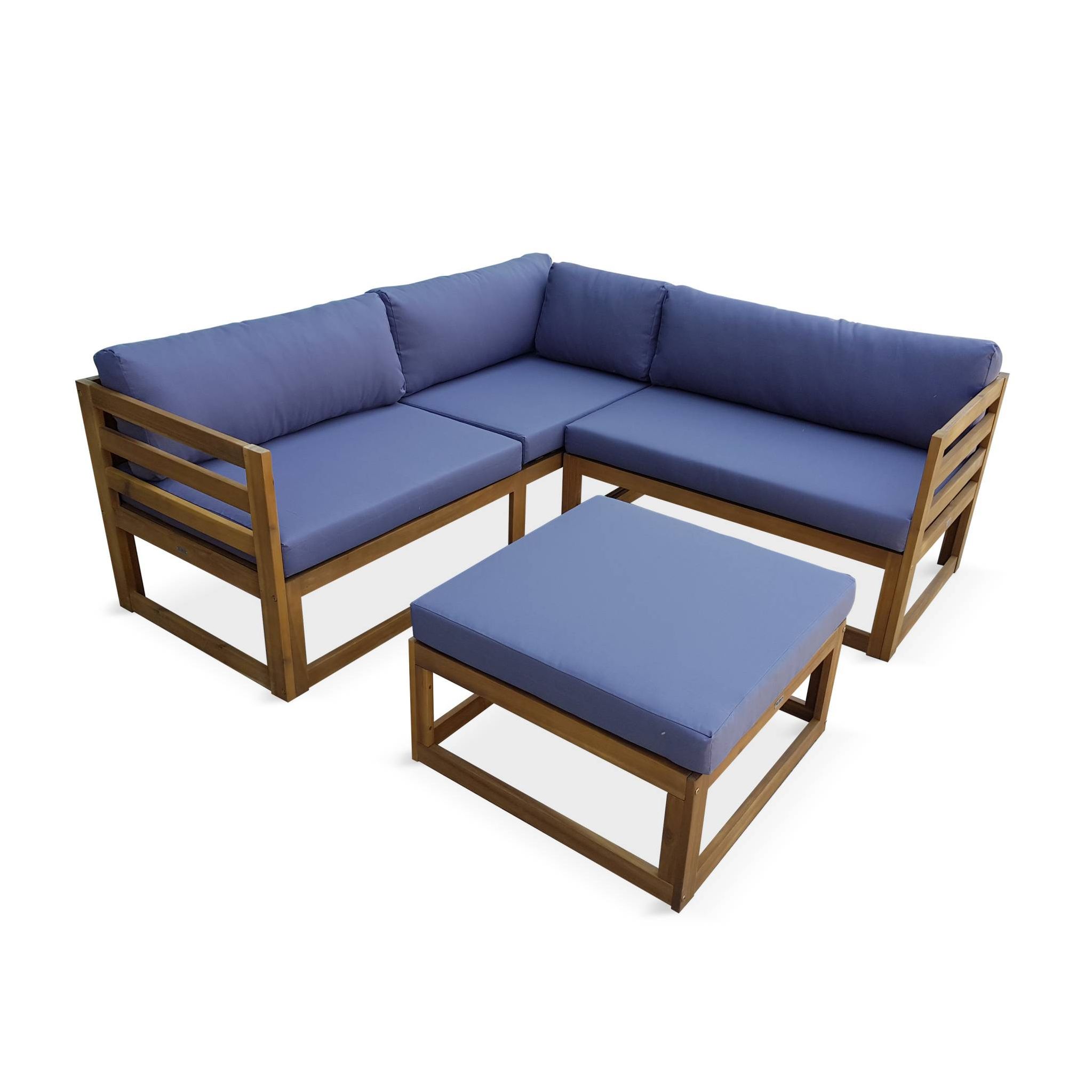 Salon De Jardin D Angle En Bois 5 Places Rafaela Coussins Gris