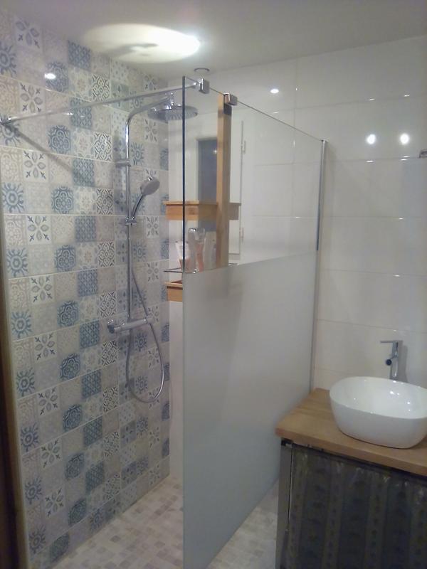 Une Douche Au Carrelage Gris Et Frise En Mosaique Carrelage