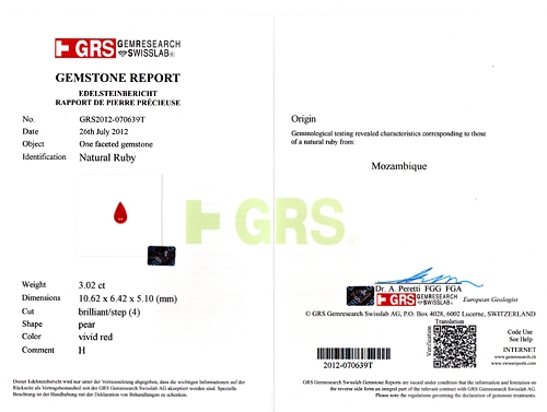 Ruby Pear 3 02 Carat Rare Gemstone Company