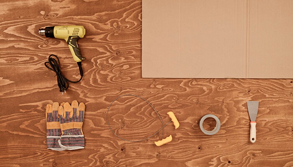 Or nous aurions besoin de décoller cette baguette. Pattex one for all. Du carton du ruban adhésif un couteau à mastic une scie à fil un sèche cheveux et des gants de sécurité.