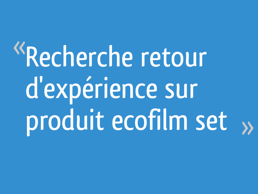 Recherche Retour D Experience Sur Produit Ecofilm Set 10 Messages