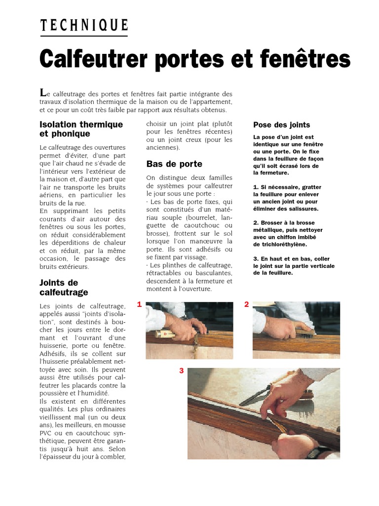 Calfeutrer Portes Et Fenetres Technique Isolation Thermique Du Batiment Genie Du Batiment
