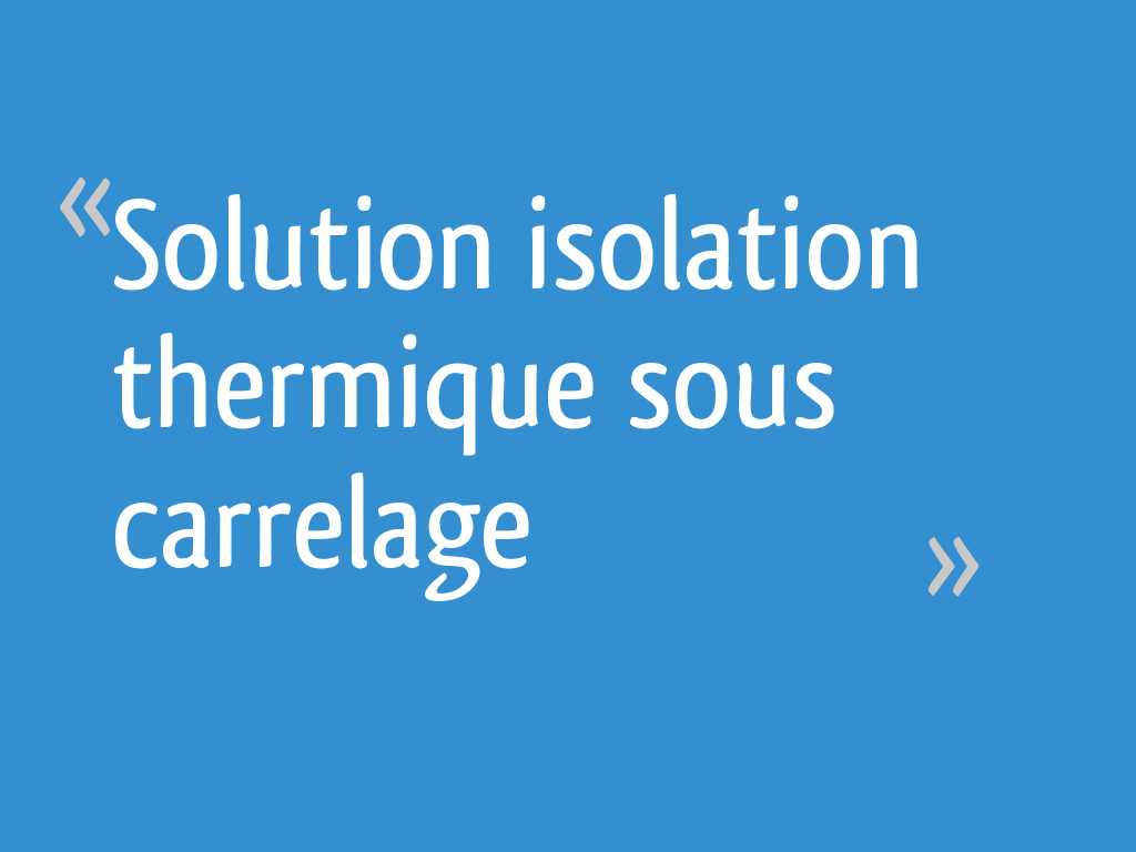 Solution Isolation Thermique Sous Carrelage 6 Messages