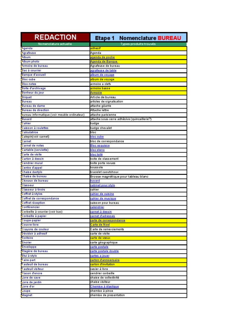 Nomenclature Bureau Papier Crayon