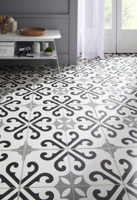 Tapis Vinyle Carreaux De Ciment Noir Et Blanc 49 5 X 83 Cm Castorama