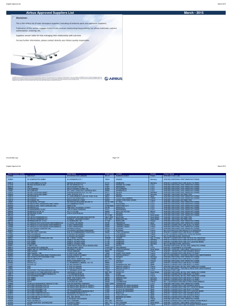 Airbus Suppliersapprovallist March2015