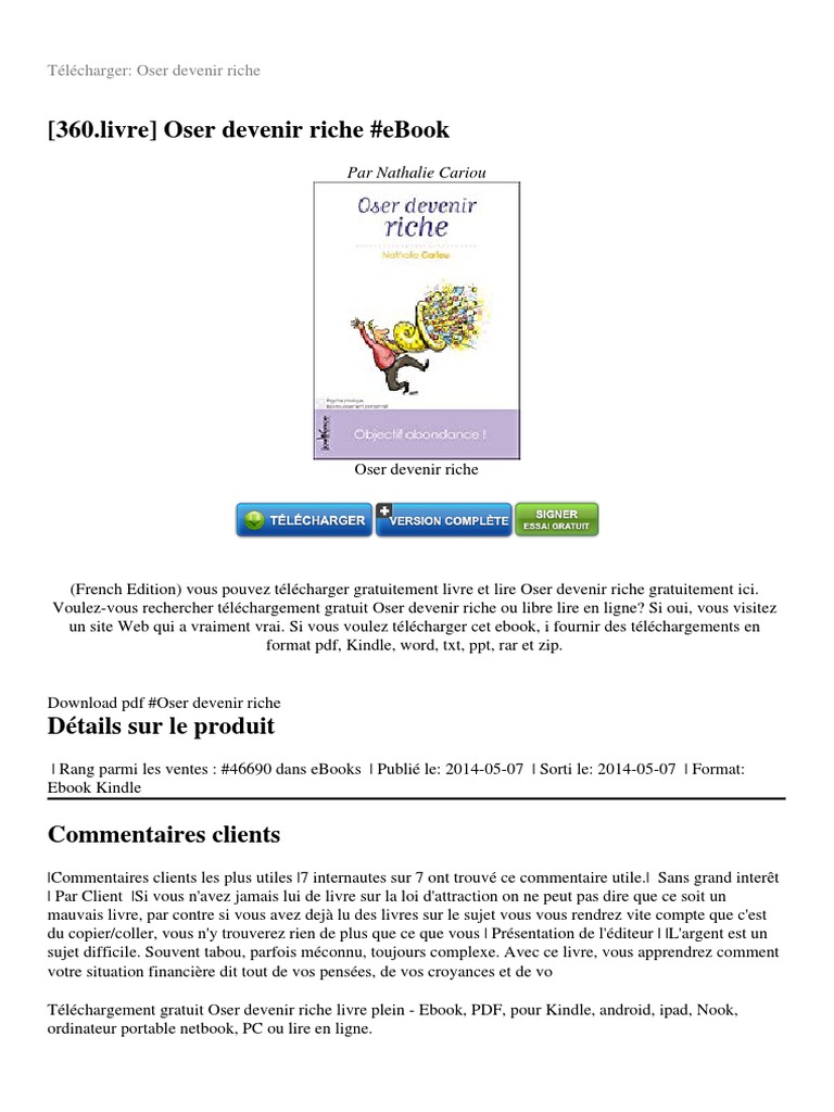 Oser Devenir Riche Livres Numeriques Technologie De Medias
