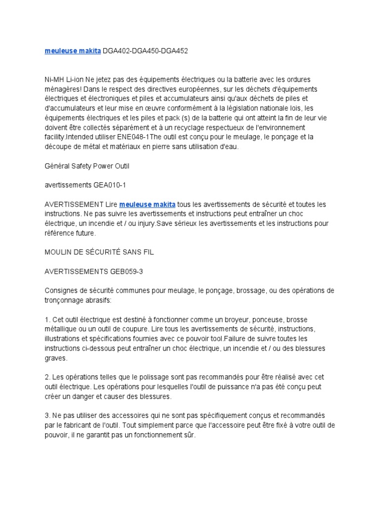 Meuleuse Makita Dga402 Dga450 Dga452 Puissance Physique